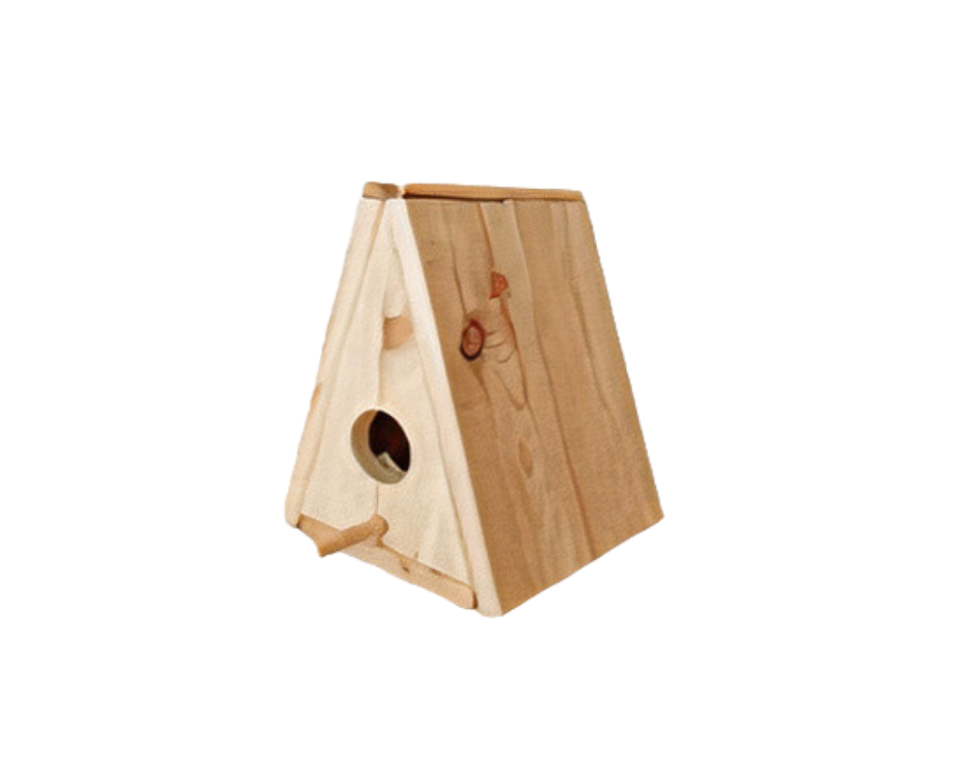 La casetta presenta un design rustico e accogliente che richiama lo stile delle case tradizionali. Ha un tetto a due spioventi, una piccola apertura a forma di foro per consentire agli uccelli di entrare e uscire, e un’apposita area interna dove gli uccelli possono costruire il loro nido.